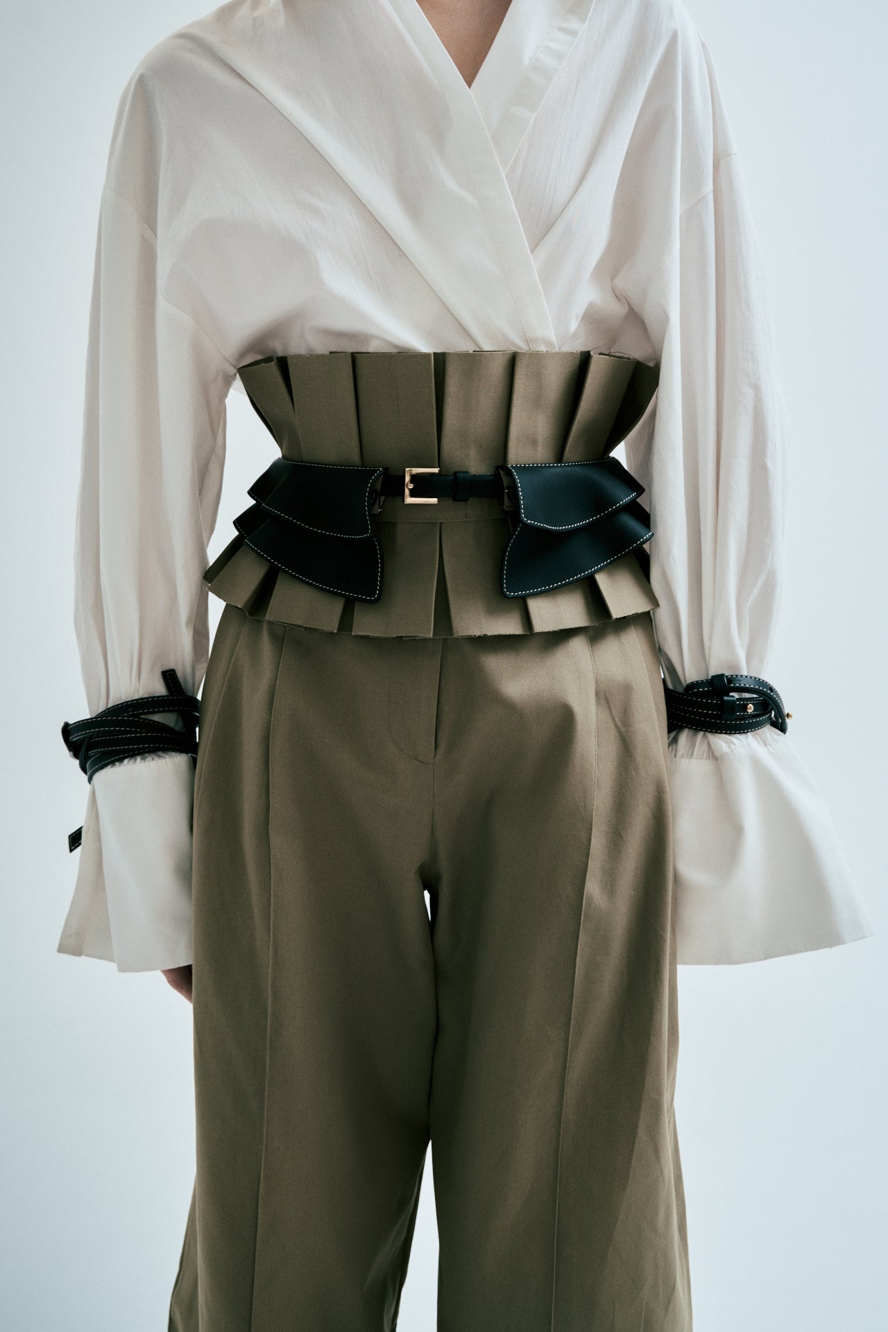Vuelo . Más que un cinturón corsé, una obra de arte. El cinturón que no pasará desapercibido. Volantes de piel extraíbles para un uso minimalista de cinturón del día a día.