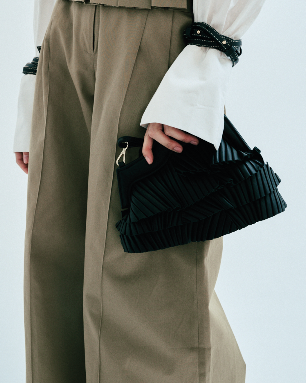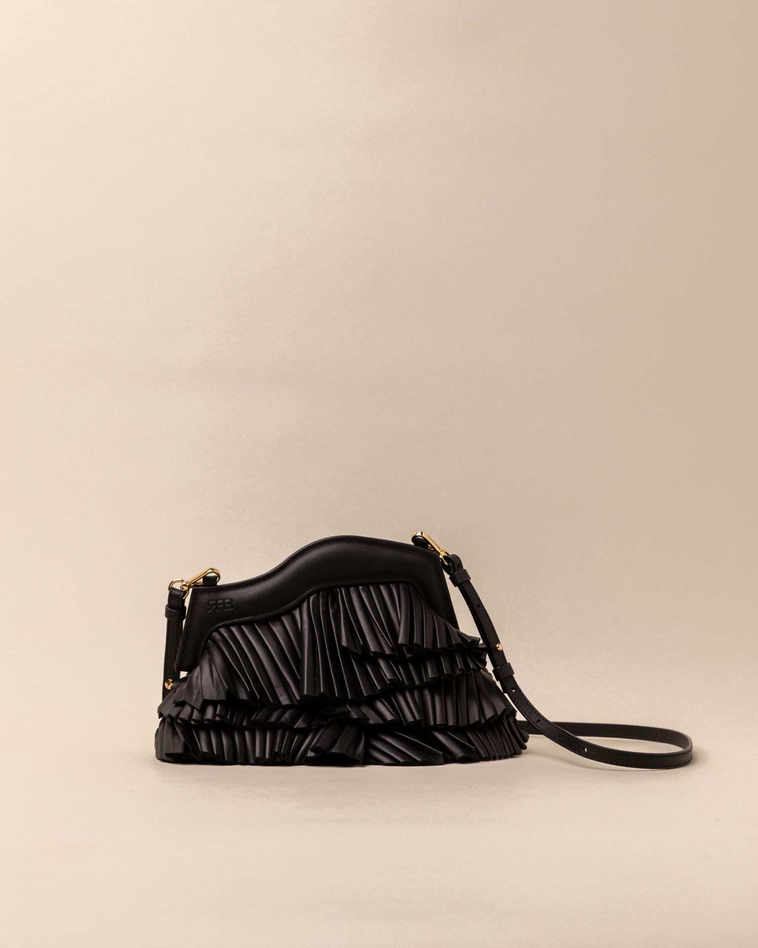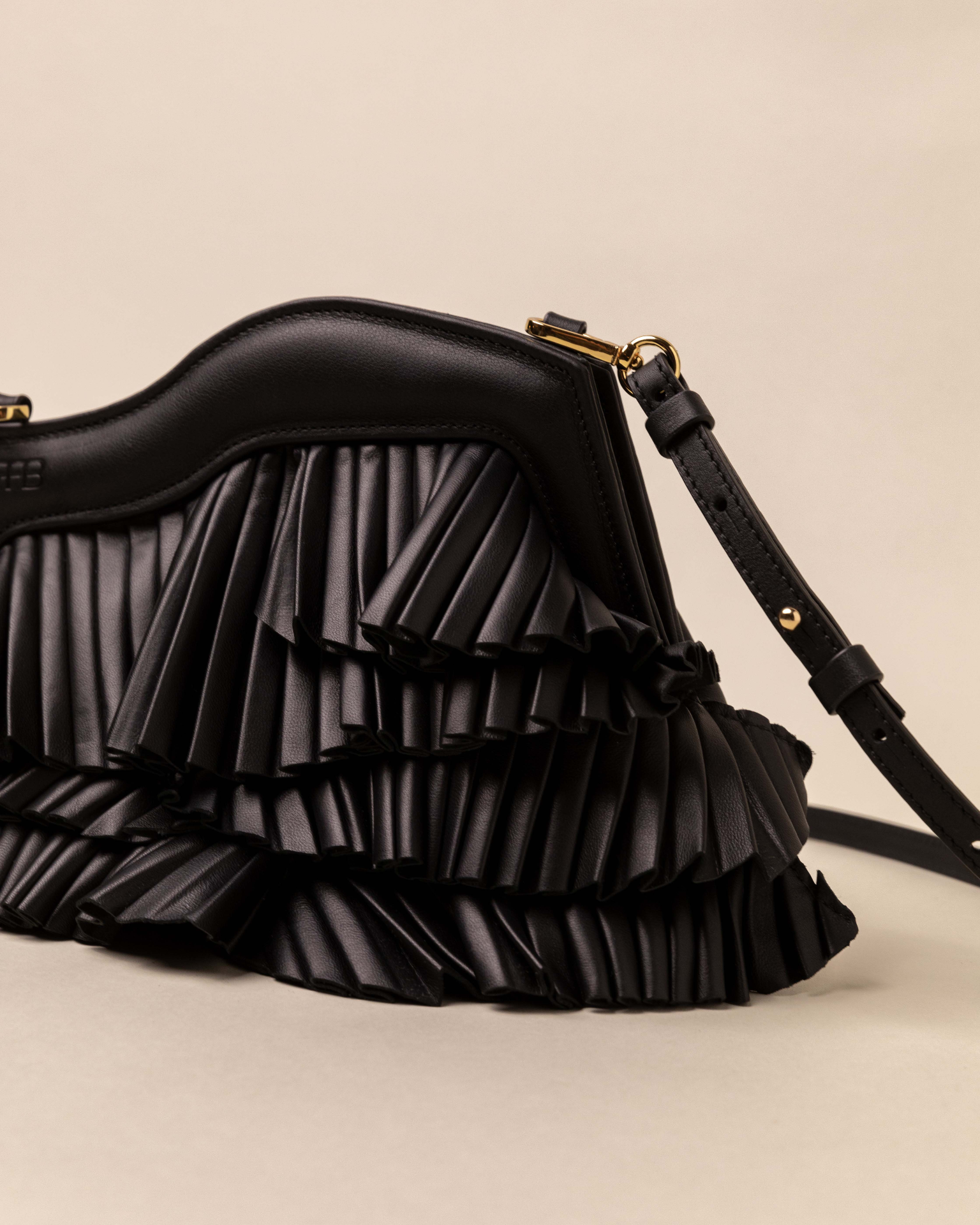 Vuelo Pleated Black Soft Clutch en piel de cordero